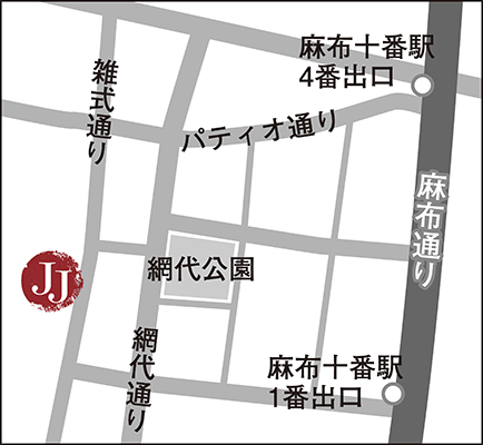 麻布十番駅より徒歩約3分、雑色通り沿いに位置する当店では、
